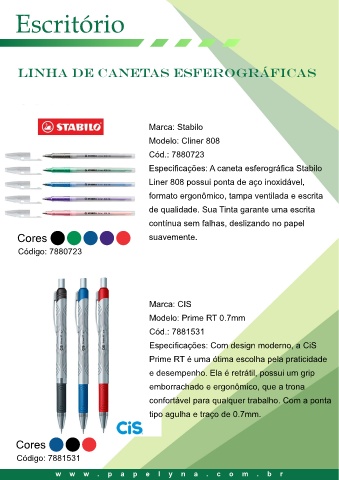 Especificações: A caneta esferográfica Stabilo