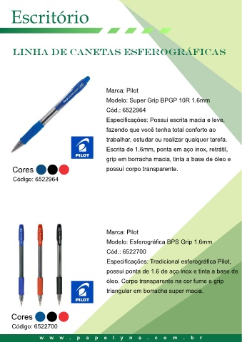 Especificações: Tradicional esferográfica Pilot,