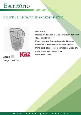Modelo: Porta Lápis e Clips Metalizado Kz08251.