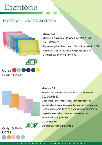 Modelo: Pasta Plástica Oficio 1421 cor Pastel