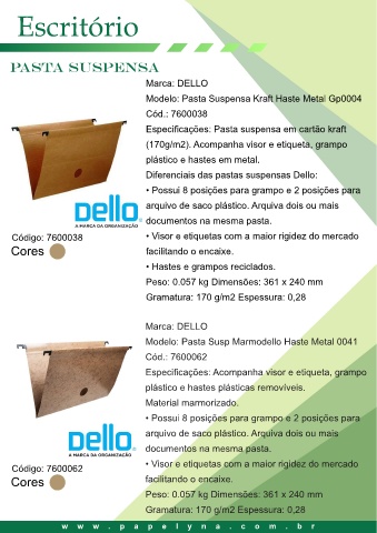Diferenciais das pastas suspensas Dello: